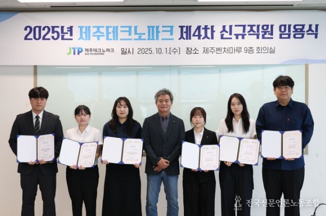 전국신문언론노동조합 김성길 기자 | 제주테크노파크(원장 지영흔, 제주TP)가 1일 제주벤처마루 9층 회의실에서 6명의 신규직원에게 임명장을 수여했다.
