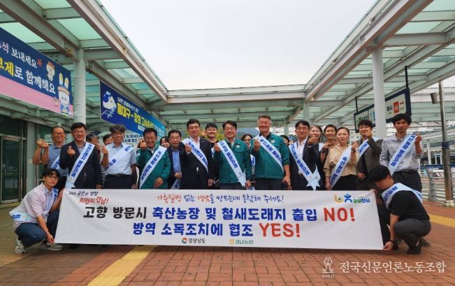 전국신문언론노동조합 강찬희 기자 | 경상남도는 2일 추석 연휴를 앞두고 귀성객 대규모 이동에 대비하여 창원중앙역에서 경남도, 창원시 가축방역 공무원과 경남농협이 함께 참여해 가축방역 홍보 캠페인을 실시했다고 밝혔다.