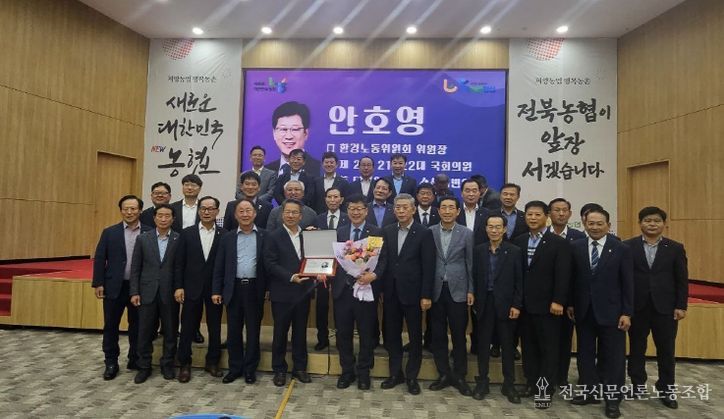 전국신문언론노동조합 강찬희 기자 | 국회 기후에너지환경노동위원장 안호영 의원(전북 완주·진안·무주)은 10월 2일, 농협중앙회로부터 감사패를 수상했다고 밝혔다.