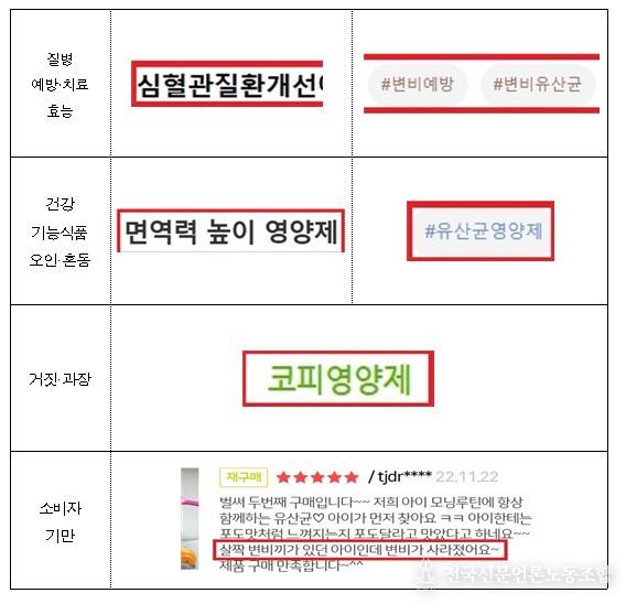 아울러, 건강기능식품 등을 온라인에서 구매하려는 경우 건강기능식품 도안과 ‘~에 도움을 줄 수 있음’과 같은 기능성 내용을 꼼꼼히 확인하고, 검증되지 않은 의학적 효능·효과 등을 내세우는 부당광고에 현혹되지 않도록 주의해야 한다.