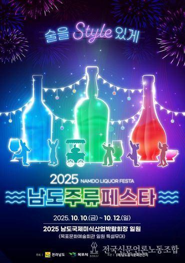전국신문언론노동조합 김성길 기자 | 전라남도는 10일부터 3일간 2025남도국제미식산업박람회장 특설무대 무료존에서 전남의 전통주를 흥겹게 즐기고 체험할 수 있는 ‘2025 남도 주류페스타’를 개최한다.