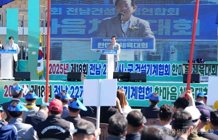 전국신문언론노동조합 김성길 기자 | 전라남도는 11일 해남 우슬체육관에서 열린 ‘제18회 (사)건설기계개별연명사업자협의회 전라남도회 한마음체육대회’에서 건설기계 산업 종사자들과 소통하며 지역 건설산업의 발전과 상생을 다짐했다고 밝혔다.