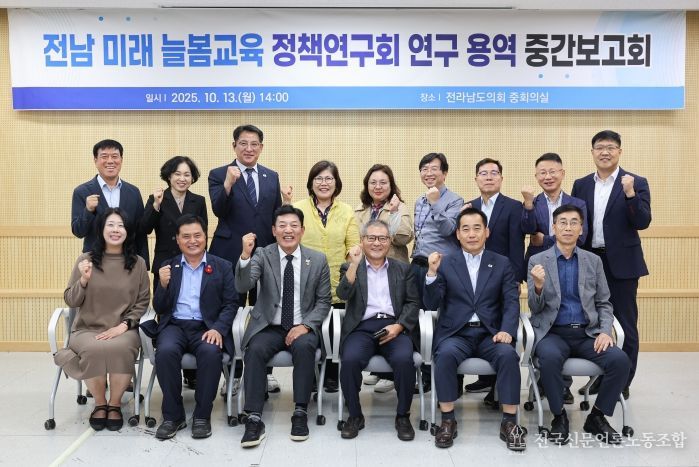 전국신문언론노동조합 김성길 기자 | 전라남도 의원연구단체 전남 미래형 늘봄교육 정책연구회(대표의원 정철)는 10월 13일 전라남도의회 중회의실에서 '전남 미래형 늘봄교육 모델개발과 학교 내외 안전사고 예방 방안 연구' 정책연구용역 중간보고회를 개최했다.