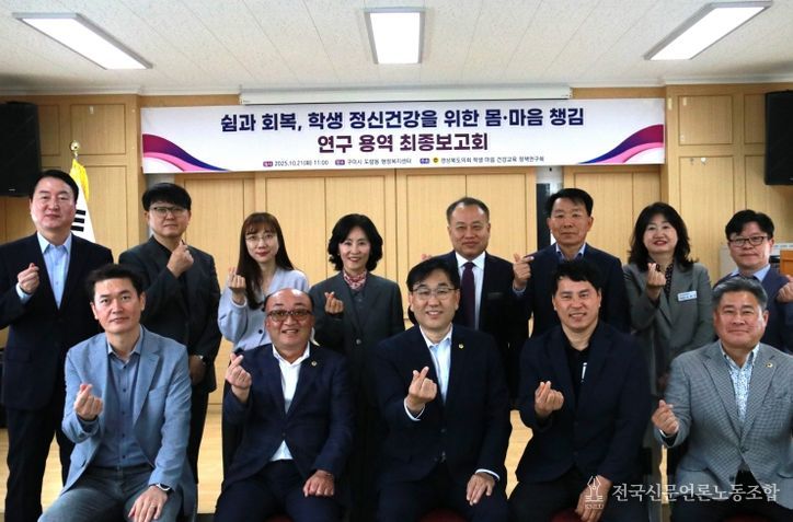 전국신문언론노동조합 강찬희 기자 | 경북도의회 의원연구모임인'경상북도 학생 마음건강 교육 정책연구회'(대표 황두영 의원)는 10월 21일 구미시 도량동 행정복지센터에서 ‘쉼과 회복, 학생 정신건강을 위한 몸·마음 챙김 연구용역’ 최종보고회를 개최했다.