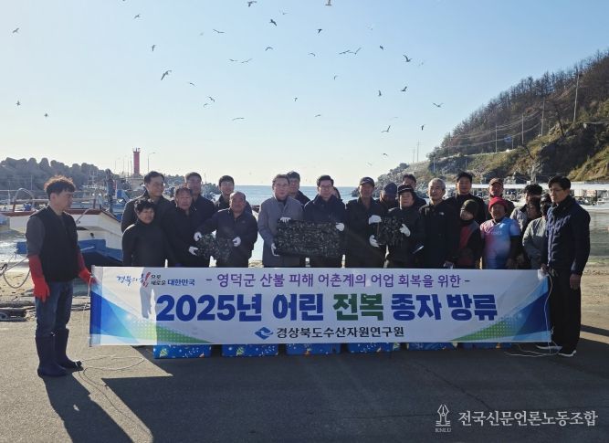 전국신문언론노동조합 강찬희 기자 | 경상북도 수산자원연구원은 산불 피해를 본 영덕군 연안 생태계의 회복과 지역 어민들의 소득 증대를 위해 19일 피해지역 5개 어촌계(7개 어촌마을)에 건강한 어린 전복 15만 마리를 무상으로 방류했다.
