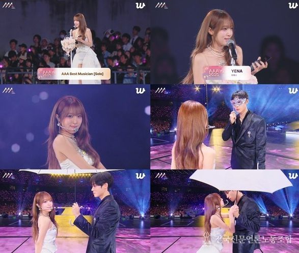 전국신문언론노동조합 강찬희 기자 | 가수 최예나(YENA)가 'AAA' 베스트 뮤지션 상을 수상, 추영우와 설렘 퍼포먼스로 존재감을 드러냈다.