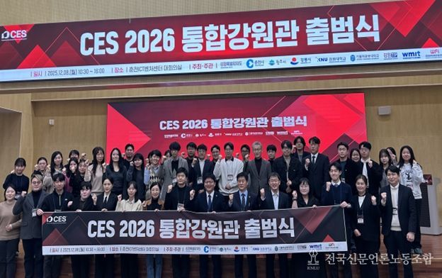 전국신문언론노동조합 강찬희 기자 | 강원특별자치도는 12월 8일 춘천 ICT벤처타운에서 ‘CES 2026 통합강원관 출범식’을 개최하고, 내년 1월 미국 라스베이거스에서 열리는 세계 최대 IT·가전 전시회 ‘CES 2026’ 참가 준비에 본격 돌입했다.
