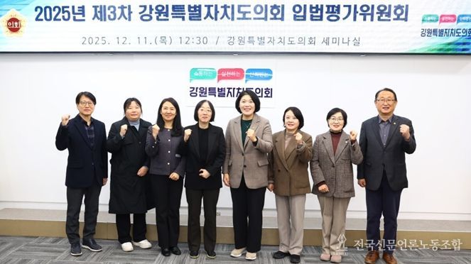 전국신문언론노동조합 강찬희 기자 | 강원특별자치도의회는 12월 11일 오후 12시 30분, 도의회 세미나실에서 '2025년도 제3차 강원특별자치도의회 입법평가위원회' 를 개최했다.