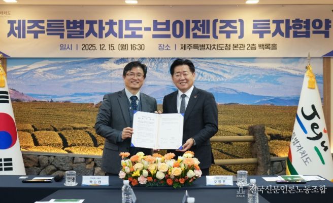전국신문언론노동조합 김성길 기자 | 제주특별자치도가 재생에너지 활용 과정에서 발생하는 전력 불균형 문제를 해소하기 위해 인공지능(AI) 기반 전력중개 플랫폼 기업 브이젠㈜과 협력한다.