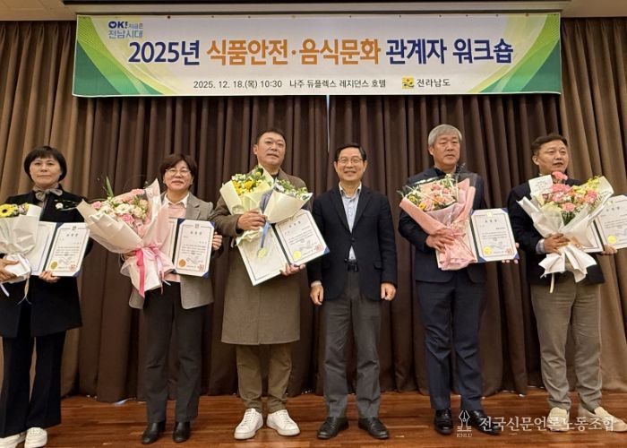 전국신문언론노동조합 김성길 기자 | 전라남도는 18일 나주 듀플렉스 레지던스 호텔에서 2025년 식품안전·음식문화 관계자 워크숍을 열어 지역사회 건강을 지키고 관광객에게 맛있는 먹거리를 제공하는 품격 있는 음식문화 조성을 다짐했다고 밝혔다.