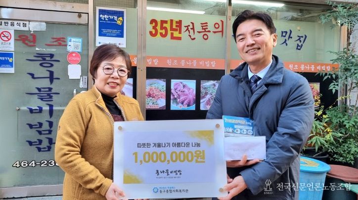 전국신문언론노동조합 이의용 기자 | 부산 동구종합사회복지관(관장 김창근)은 지난 15일 부산 동구 수정동에 위치한 식당 원조콩나물비빔밥(이희숙 대표)에서 성금 100만원을 후원했다고 밝혔다.