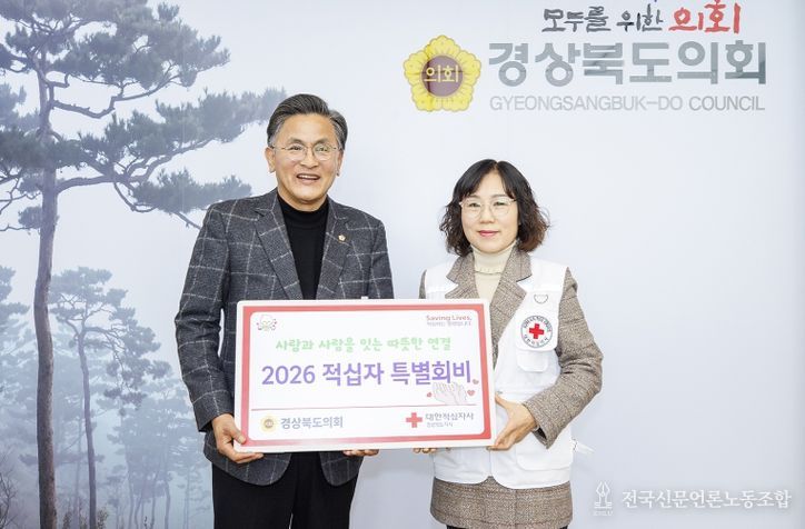 전국신문언론노동조합 강찬희 기자 | 경상북도의회는 2025년 12월 22일 도의회 의장실에서 대한적십자사 경북지사에 2026년도 적십자 특별회비를 전달했다.