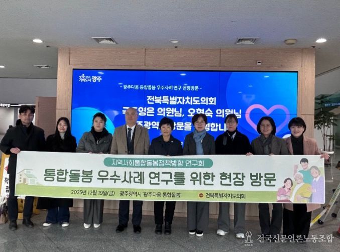 국주영은 의원(전주12·더불어민주당)은 “광주다움 통합돌봄의 운영 구조와 재정 모델, 인력 배치 방식 등을 면밀히 분석해 전북자치도 여건에 맞는 전북형 지역사회 통합돌봄 정책 방향을 구체화해 나가겠다”며, “도의회 차원에서도 제도 개선과 예산 확보를 위한 정책적 역할을 적극적으로 수행하겠다”고 강조했다.