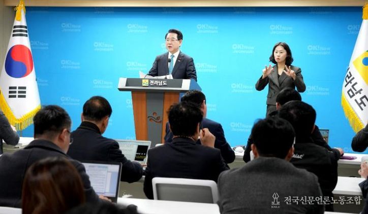 전국신문언론노동조합 김성길 기자 | 김영록 전라남도지사는 23일 도청 브리핑룸에서 2025년 송년기자간담회를 열어 국고 10조 시대 개막, AI·에너지 미래기반 대거 마련 등 민선 7·8기 성과를 설명하고, 전남 대부흥 비전과 2026년 도정 방향을 발표했다.