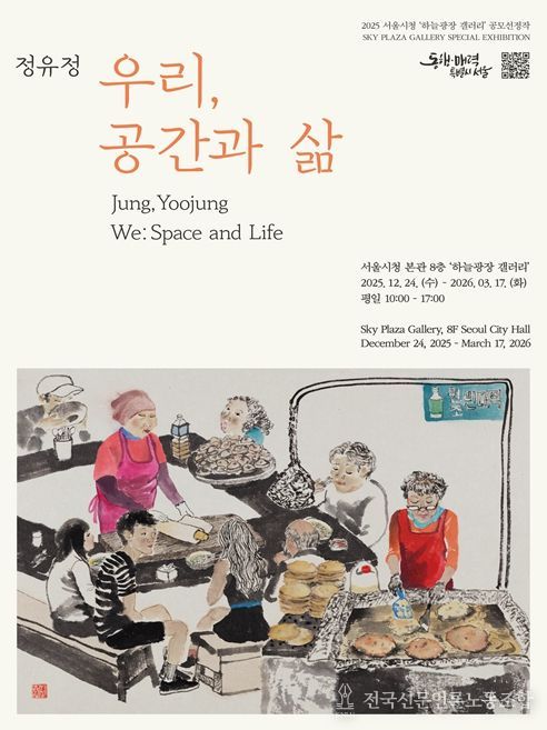 전국신문언론노동조합 강찬희 기자 | 일상 속에서 만나는 따뜻한 웃음의 순간들이 한지 위에 펼쳐진다. 12월 24일부터 2026년 3월 17일까지 서울시청 본관 8층 ‘하늘광장 갤러리(Sky Plaza Gallery)’에서 정유정 작가의 ‘우리, 공간과 삶’ 전시가 열린다.