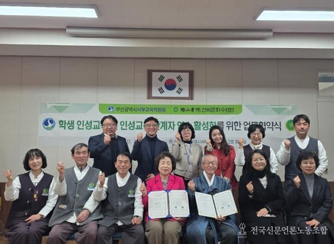 전국신문언론노동조합 조창제 기자 | 부산광역시서부교육지원청은 지난 24일 오후 서부교육지원청에서 경북 안동시 도산서원 선비문화수련원과 ‘전통문화체험기관 연계 인성교육 프로그램’을 위한 업무협약을 체결했다고 밝혔다.