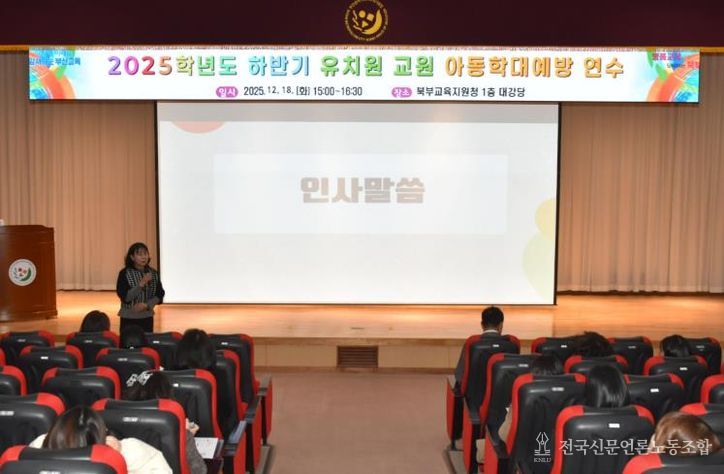 전국신문언론노동조합 조창제 기자 | 부산광역시북부교육지원청은 지난 18일 교육지원청 대강당에서 관내 공‧사립유치원 관리자 및 교사 80여 명을 대상으로 아동학대 예방교육을 실시했다고 밝혔다.