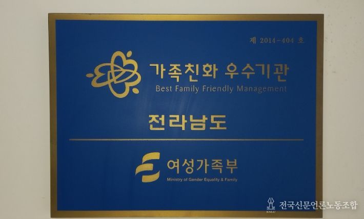 전국신문언론노동조합 김성길 기자 | 전라남도는 성평등가족부가 주관하는 ‘가족친화인증기관’ 재인증 심사를 통과해 향후 3년간 인증 자격을 유지하게 됐다.