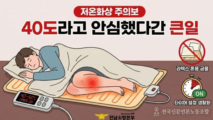 전국신문언론노동조합 김성길 기자 | 본격적인 연말 한파로 가정 내 난방기구 사용이 급증한 가운데, 전남소방본부가 '저온화상'에 대한 각별한 주의를 당부하고 나섰다.