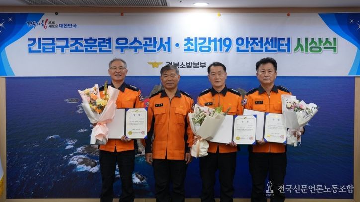 전국신문언론노동조합 강찬희 기자 | 경북소방본부는 30일 본부 7층 소방작전회의실에서 ‘2025년 긴급 구조 훈련 평가 우수관서’와 ‘2025년 최강119안전센터’ 시상식을 개최했다.