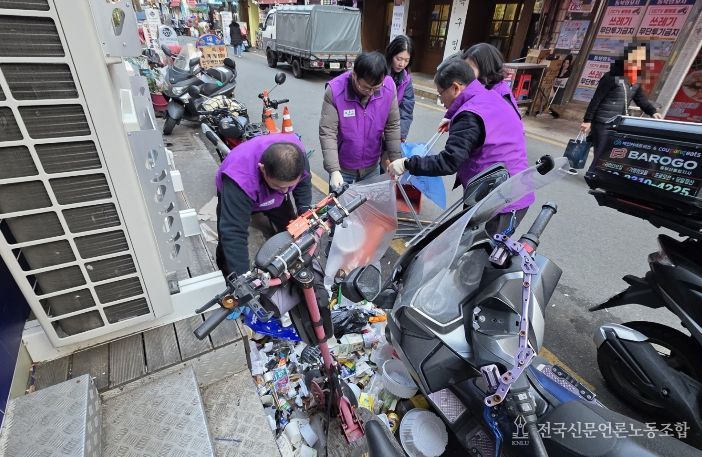 전국신문언론노동조합 조창제 기자 | 부산 중구 부평동주민센터는 지난 1월 5일, 공무원과 주민 등 10여 명이 함께 광복로 주변 골목길 일원 환경정비 활동을 실시했다.