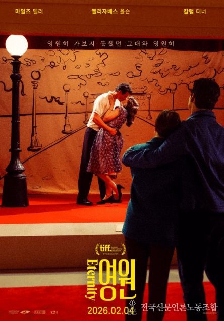 전국신문언론노동조합 강찬희 기자 | 사후세계 삼각 로맨스를 감각적으로 그린 A24표 로맨틱 코미디 ‘영원’이 티저 포스터 3종을 공개했다.[제목: 영원 | 원제: Eternity | 감독: 데이빗 프레인 | 출연: 엘리자베스 올슨, 마일스 텔러, 칼럼 터너 外 | 수입: 플러스엠 엔터테인먼트 | 공동수입/배급: 워터홀컴퍼니㈜]