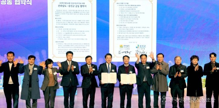 전국신문언론노동조합 김성길 기자 | 전라남도는 7일 강진아트홀에서 강진만 횡단교량 건설사업을 신속하게 추진하기 위해 강진군과 공동 협약을 하고, 본격적인 사업 추진에 나섰다.