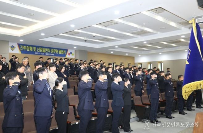 이번 행사는 교육원장 직무대행을 비롯한 교직원과 가족 등 약 120여명이 참석한 가운데 졸업증서 및 임명장을 수여하고, 신임 공무원들이 성실한 복무를 다짐하는 복무선서 순으로 진행됐다.