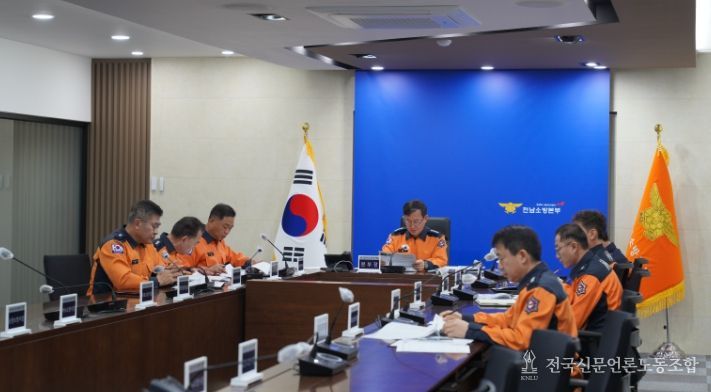 이번 회의는 소방본부 관계자 및 일선 소방서 재난 대응 책임자인 대응구조과장 등 60여 명이 참석한 가운데 진행되었으며, 주말 기간 전남 권역의 기상 전망을 공유하고 관서별 세부 대응 대책과 유관기관 협조 사항 등을 집중적으로 점검했다.
