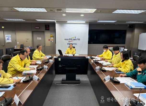전국신문언론노동조합 김성길 기자 | 전북특별자치도는 10일 17시 노홍석 행정부지사 주재로 도 협업부서 및 14개 시군과 함께 대설·한파·강풍 관련 긴급 대책회의를 개최했다.
