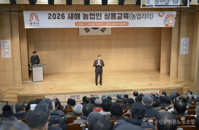 전국신문언론노동조합 강찬희 기자 | 공주시는 지난 9일 농업기술센터 대강당에서 이장과 농업인학습단체 임원 및 교육을 희망하는 농업인 등을 대상으로 2026년 새해 농업인 실용교육 ‘농업리더 특별과정’을 실시했다.