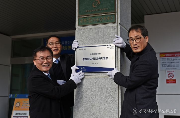 전국신문언론노동조합 강찬희 기자 | 충청남도서산교육지원청은 1월 9일 오전 11시 20분, 교육지원청 본관 입구에서 교육부 주관 ‘늘봄·방과후학교 우수사례 기관’ 전국 대상 수상을 기념하는 현판식을 거행했다.
