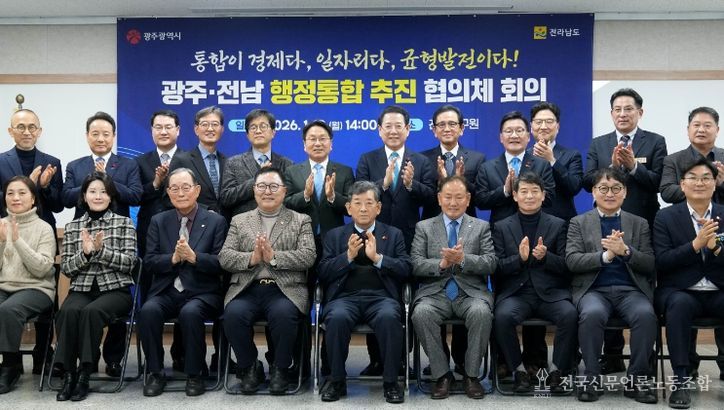 전국신문언론노동조합 김성길 기자 | 전라남도와 광주광역시는 12일 나주 전남연구원에서 제1호 광역통합 지방정부 출범을 향한 민관합동 실무기구인 광주·전남 행정통합 추진협의체 첫 회의를 열어 특별법과 시도민 의견수렴, 공론화 방안 등을 논의했다.