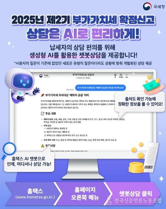 납세자의 상담 편의를 위해 생성형 AI를 활용한 챗봇상담을 제공합니다!