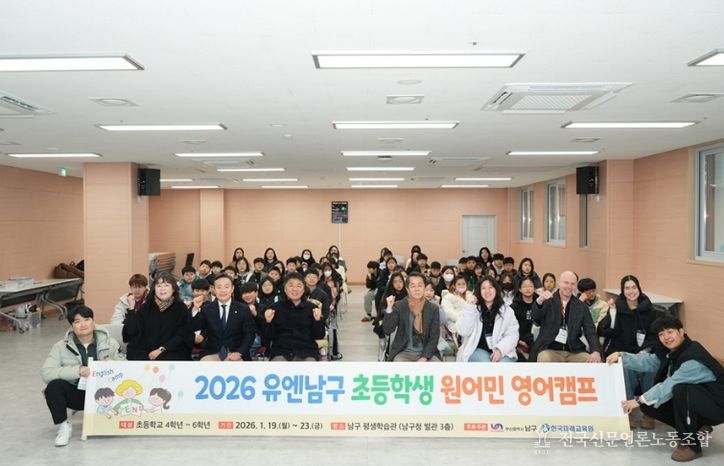전국신문언론노동조합 이의용 기자 | 부산 남구는 지난 1월 19일부터 23일까지 5일간 남구청 별관 평생학습관에서 '2026년 유엔남구 초등학생 원어민 영어캠프'를 운영한다고 밝혔다.