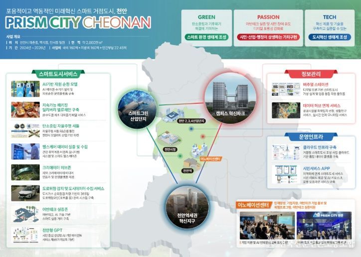천안시는 ‘포용적이고 역동적인 미래 혁신 스마트 거점도시 조성’을 목표로 정부의 AI 국가 전략에 맞춘 지역 특화 사업을 본격 추진한다고 20일 밝혔다.