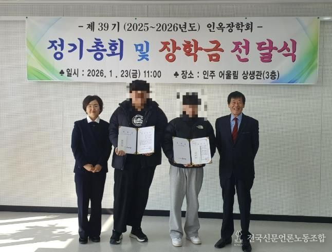 이날 전달식에서는 학업에 성실히 임하고 있는 고등학교 재학생 및 진학 예정자 2명에게 각 50만 원씩 총 100만 원의 장학금이 전달됐으며, 참석자들은 학생들의 새로운 출발을 응원하며 격려의 말을 전했다.