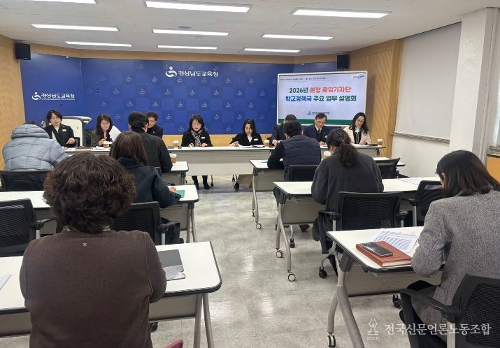 전국신문언론노동조합 강찬희 기자 | 경상남도교육청은 26일 본청 브리핑룸에서 ‘2026년 학교정책국 업무 설명회’를 열고, 교육활동 보호망 강화와 미래형 교육과정 안착을 핵심으로 하는 주요 업무 계획을 발표했다.
