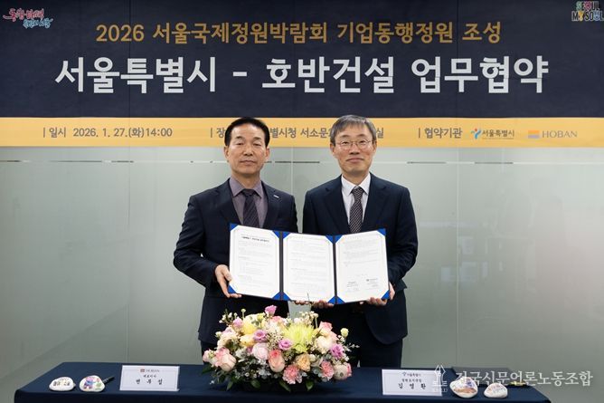전국신문언론노동조합 강찬희 기자 | 서울시는 2026년 5월 1일 서울숲에서 개막하는 서울국제정원박람회를 앞두고, 호반건설과 ‘기업동행정원’ 조성을 위한 업무협약(MOU)을 1월 27일 체결했다.