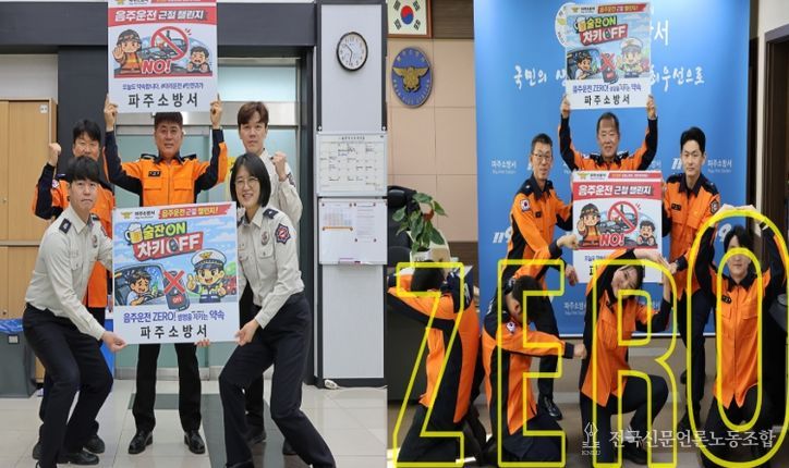 전국신문언론노동조합 기자 | 파주소방서는 공직기강 확립과 음주운전 근절을 위한 선제적 예방 활동의 하나로, 오는 2월 13일까지 전 부서를 대상으로 ‘음주운전 ZERO 참여형 챌린지’ 캠페인을 진행하고 있다.