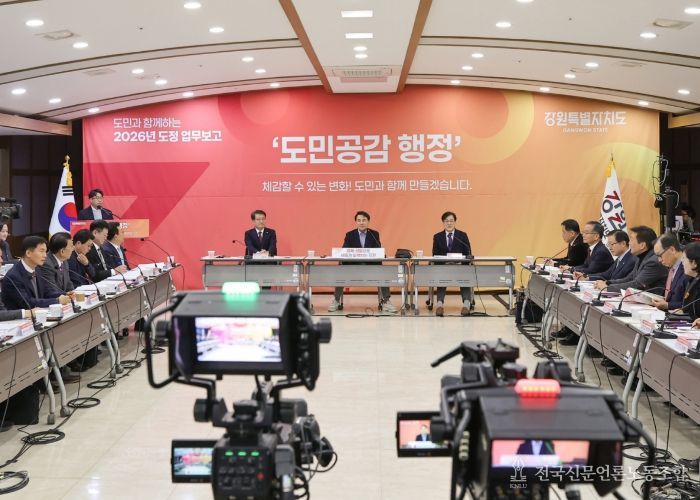 전국신문언론노동조합 강찬희 기자 | 강원특별자치도는 1월 29일, 도 경제진흥원에서 2026년 도정 업무보고회를 열고 올해 주요 사업 추진 계획을 점검했다.