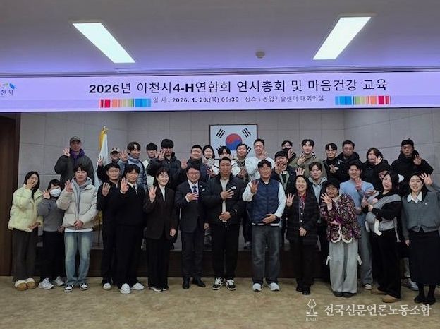 전국신문언론노동조합 기자 | 이천시4-H연합회는 29일 농업기술센터 대회의실에서 회원 50여 명이 참석한 가운데 2026년 연시총회를 개최했다.