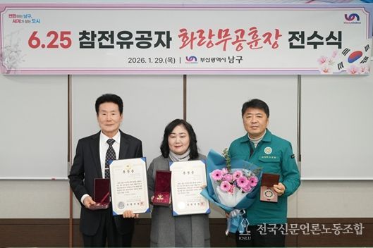 전국신문언론노동조합 이의용 기자 | 부산 남구는 지난 29일 국방부와 육군본부가 주관하는 '6·25전쟁 무공훈장 찾아주기' 사업의 일환으로‘6·25전쟁 무공훈장 전수식’을 개최하고 유가족에게 무공훈장을 전달했다고 밝혔다.