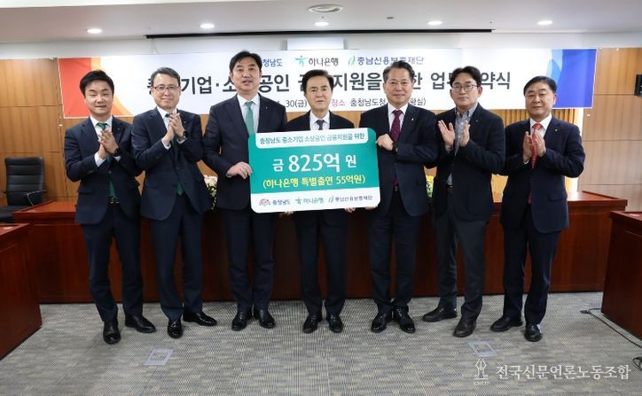 전국신문언론노동조합 강찬희 기자 | 충남도가 고환율·고물가·고금리 등으로 어려움을 겪고 있는 도내 중소기업과 소상공인을 위해 하나은행·충남신용보증재단과 손을 맞잡았다.