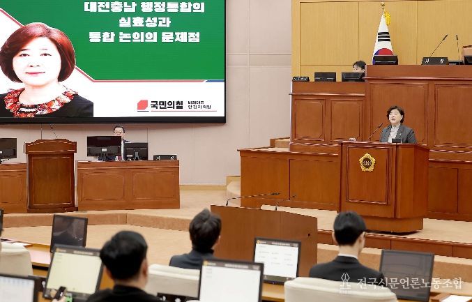 전국신문언론노동조합 강찬희 기자 | 대전시의회 행정자치위원회 안경자 의원(국민의힘, 비례대표)이 2일 열린 제292회 임시회 제3차 본회의에서 5분 자유발언을 통해 대전·충남 행정통합의 실효성과 논의 과정의 문제점을 지적했다.