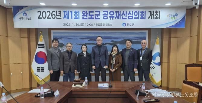 전국신문언론노동조합 강찬희 기자 | 완도군은 지난 1월 30일 상황실에서 '2026 제1회 완도군 공유재산 심의회'를 개최하고 군 주요 자산 관리와 전략 사업 추진을 위한 심의를 마쳤다.