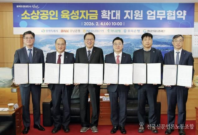 시는 2월 4일 창원시청 접견실에서 BNK경남은행, NH농협은행, 하나은행, 우리은행, 경남신용보증재단과 업무협약을 체결하고, 소상공인 금융 지원 확대를 위한 상생 협력에 나섰다.