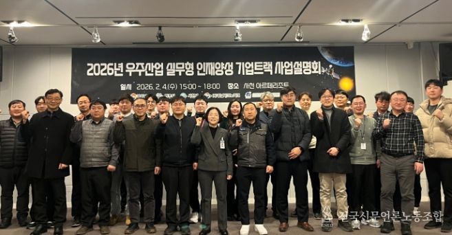 전국신문언론노동조합 강찬희 기자 | 경상남도는 4일 사천시 소재 아르떼리조트에서 실무형 인재양성 기업트랙 사업계획 설명과 기업 애로사항 청취를 위한 ‘2026년 우주산업 실무형 인재양성 기업트랙 사업설명회’를 개최했다고 밝혔다.