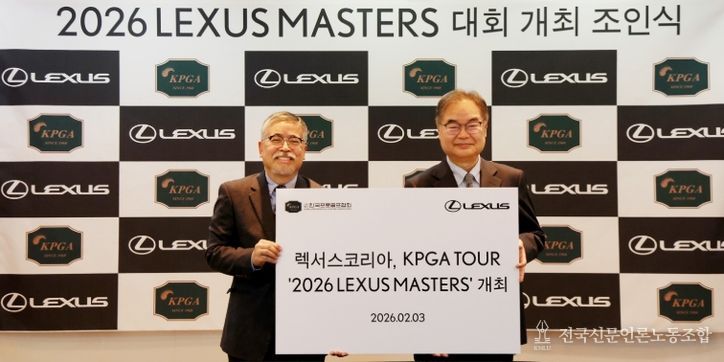 전국신문언론노동조합 강찬희 기자 | 렉서스코리아와 사)한국프로골프협회(이하 KPGA)가 2월 3일(화) 경기도 성남시 소재 KPGA빌딩(10층)에서 ‘2026 렉서스 마스터즈’ 대회 개최 조인식을 가졌다.