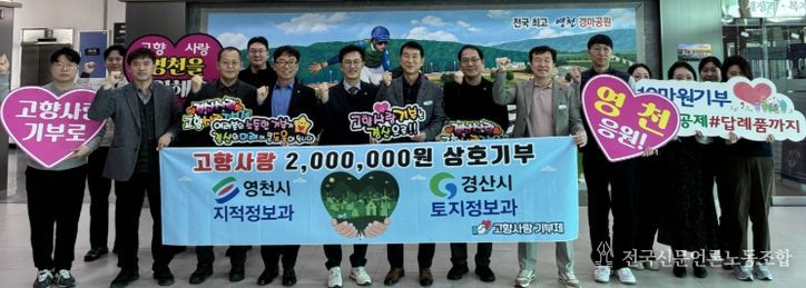 전국신문언론노동조합 강찬희 기자 | 영천시 지적정보과와 경산시 토지정보과는 고향사랑기부제 활성화를 위해 2024년, 2025년에 이어 2026년에도 상호 기부식을 개최해 지역 간 협력의 모범 사례를 만들어가고 있다.
